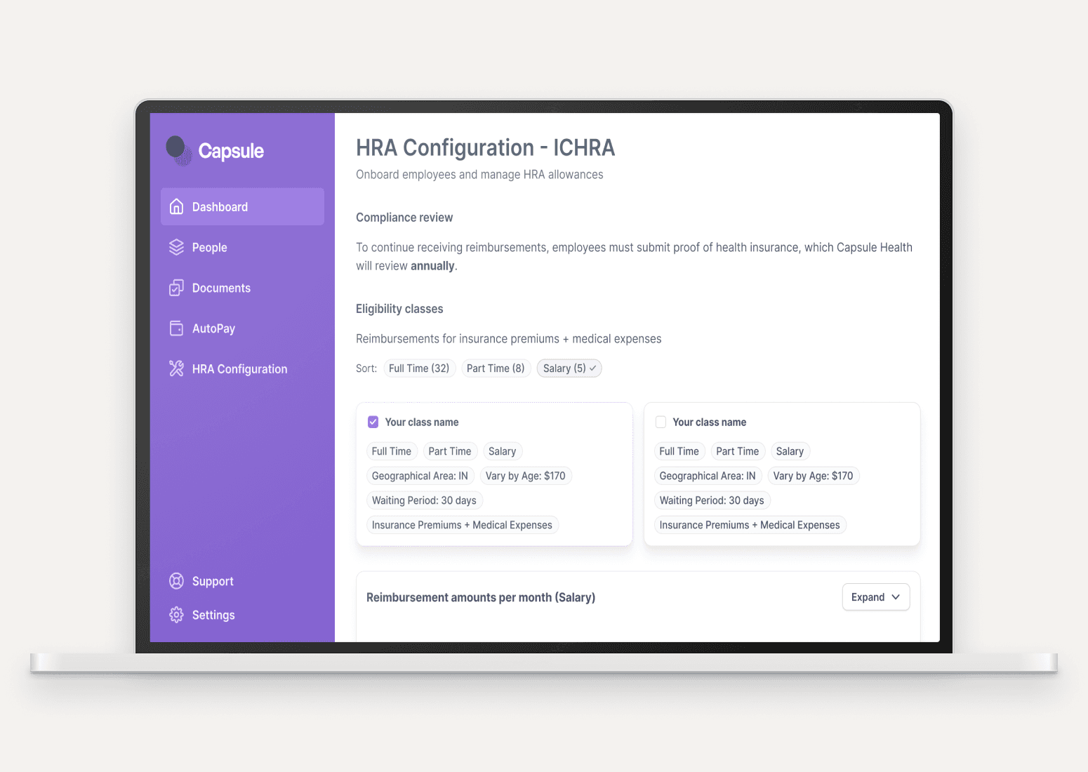 Choosing a health insurance plan shouldn't be a daunting task. Capsule Health empowers both employers and employees by allowing them to ditch traditional group plans with constant rising premiums and change to an HRA (health reimbursement arrangement), allowing for better price predictability and choice in finding the right health plan.