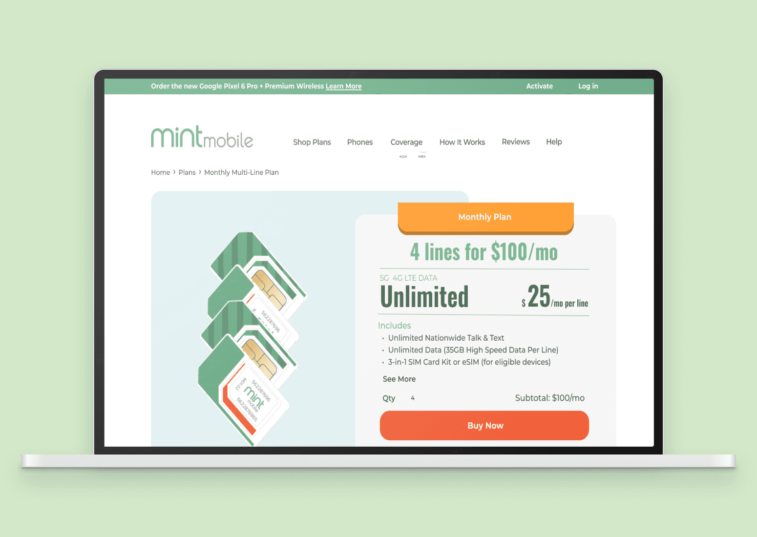 Mint Mobile disrupted the prepaid cellphone market by introducing multi-month plans that are enticing to customers and result in increased customer retention. As part of a design competition sprint, I designed an added feature to Mint Mobile, allowing customers to have an unlimited data cellphone plan with multi-line discounts.